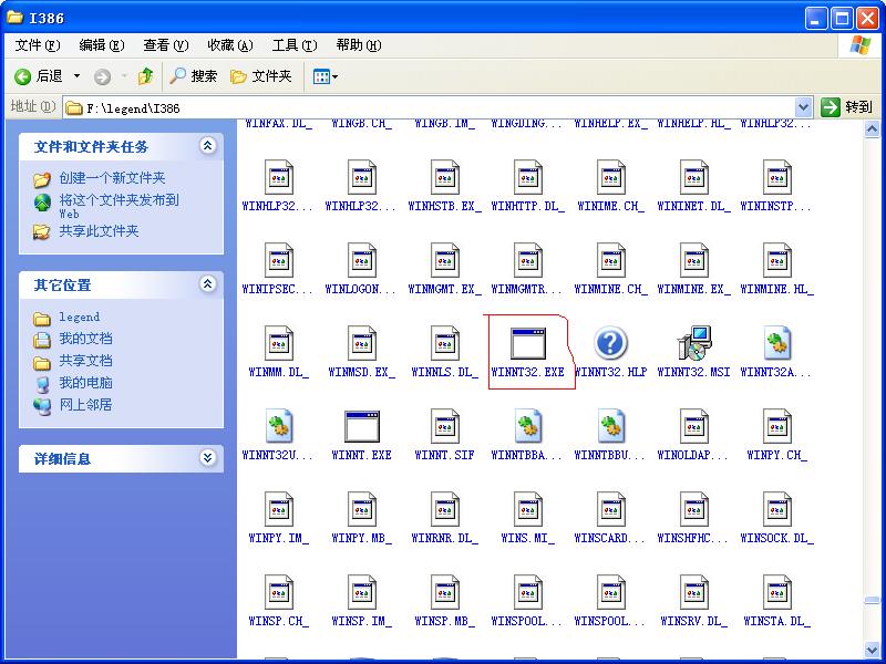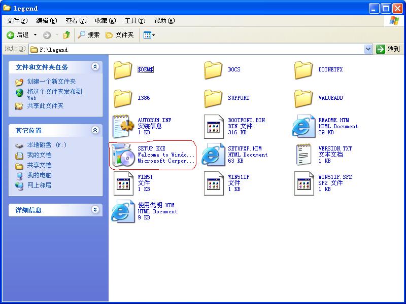 如果你的硬盘上有XP安装文件,那么找到它,打开它的目录找到I386文件夹打开然后找到WINNT32。EXE双击。就可以运行windows安装程序。