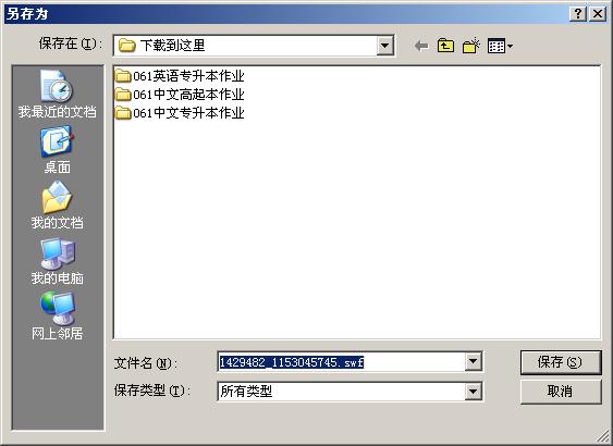 我原来的电脑是WIN XP系统,在网上浏览.swf、.xls、.doc文件或者看视频电影时,点击链接或者在地址栏输入"http://www.…….swf"出现的对话框是问你打开(运行)或者保存。现在单位的新电脑也是WIN XP系统,在网上浏览.swf文件或者看视频电影时,点击链接或者在地址栏输入"http://www.…….swf"出现的对话框是要么只有一个“另存为”对话框,如图2,要么在出现“另存为”对话框的同时也打开了这个文件,如图1和图2。为什么?应该如何修复?谢谢了!