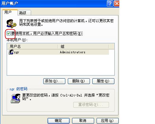 在“开始”→“运行”→输入“control.exe userpasswords2”进入“用户帐户”参见下图所示