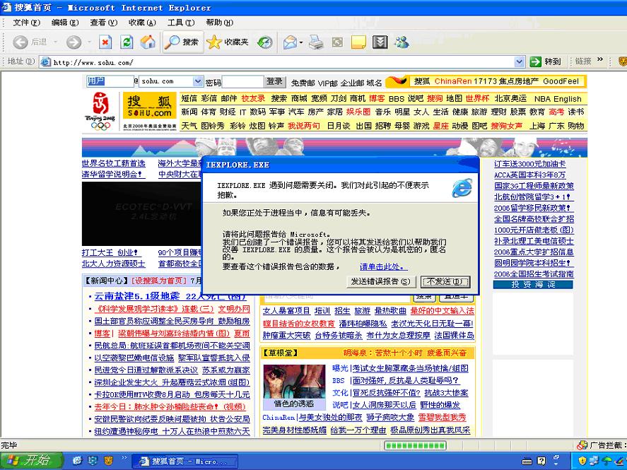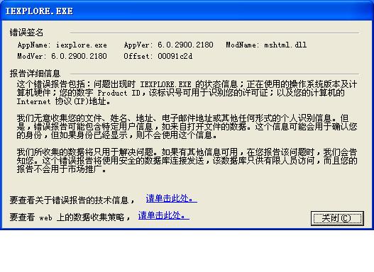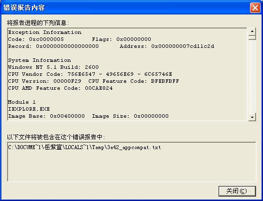 【宝贝萱宣的贴子】在浏览网页时,会突然显示IE遇到问题需要关闭,如图片: