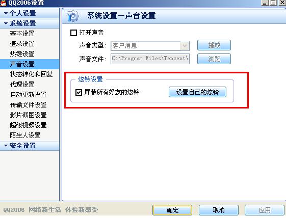 QQ——菜单——设置——系统设置——声音设置——照图中