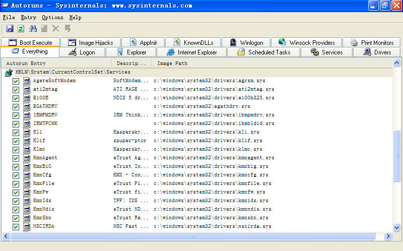 与SREng和HijackThis日志相比,autoruns日志多一部分——“驱动项”。就检查驱动级木马而言,这是重要的。