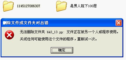 太空有下载的,可以帮助你了解是什么程序占用了你的文件,安装后鼠标点击右键有 运Unlocker解锁,点击你要删除文件,在点击删除,后点击终止程序,就可以删除了