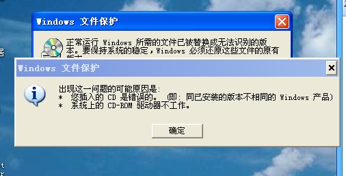 小弟电脑最近系统崩溃,于是就重新装了,我的电脑是联想的机器,以前用的联想OEM版的XP系统,这次又装了OEM版的,但没想到的是,安装完后,驱动也安好了,但是等到安软件的时候就会总弹出WINDOWS 文件保护那个对话框,取消后一会又弹了出来.反复出.开始我以为关了错误报告就行,可是没有用.又换了其他几个服务还是不行.弄的我没办法,只好换个版本.没想到的是,我换了3.4个版本的XP(肯定是D版的),还是总弹,弄的我一筹莫展.但有意思的是,我把XP的盘放到光驱中他就不弹了,但是谁能总把系统盘放光驱里啊...