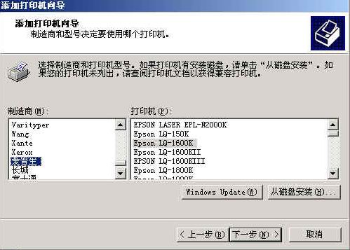哦哦 不知道你的问题解决没有,,,,LQ-1600是XP系统自带就有的了,,你在打印机与传真里,点击"添加打印机" , "下一步"选择LPT"然后选择EPSON,,察找1600就可以的了..