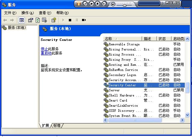 在“开始”“设置”“面板”里打开“安全中心”上面显示安全中心未启用或被关闭,请重启机器,或打开安全中心服务!请问,怎么办啊?快帮帮我啊!服务在哪啊?打开后怎么办啊?现在不知道防火墙被没被关啊!