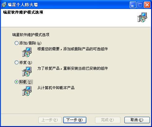 你选择了卸载吗?开始--程序--瑞墙--添加删除组件--卸载--下一步。。。