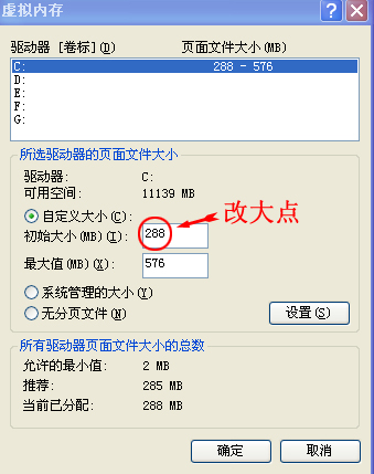 到控制面板——系统——高级里面去调虚拟内存设置,把初始值改大,直到不出问题为止