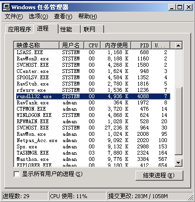 发现有一个rundll32.exe在运行,