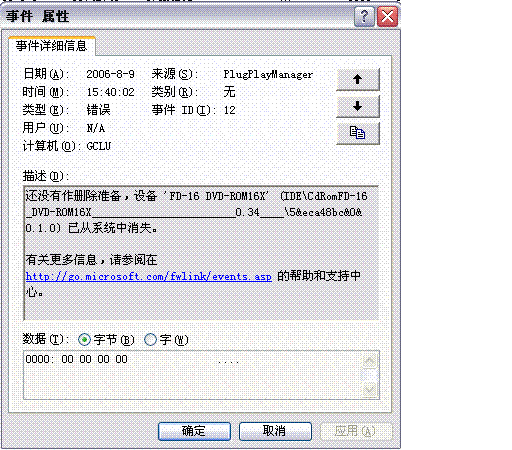 还没有作删除准备,设备 'FD-16 DVD-ROM16X' (IDE\CdRomFD-16_DVD-ROM16X________________________0.34____\5&eca48bc&0&0.1.0) 已从系统中消失。