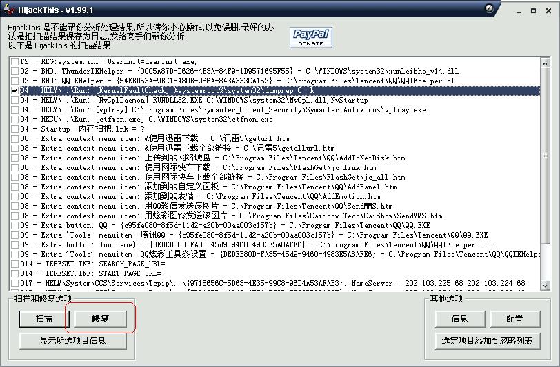 用hijackthis扫个日志上来