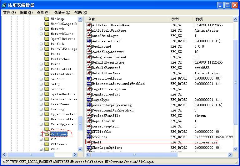 "Shell"="Explorer.exe"