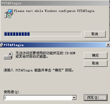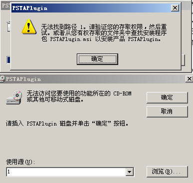 每次开机后,都会出现一个要求安装某程序的对话框。如图所示的上面一个图,过一段时间又会出现下面的哪个图,要求指出安装程序的位置。