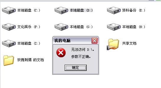 ★★★进入D盘系统错误症状:无法访问D:\,参数不正确.双击不能进入D盘,会返回"我的电脑"界面.右键查看D盘属性显示:可用空间与已用的空间均为0字节!