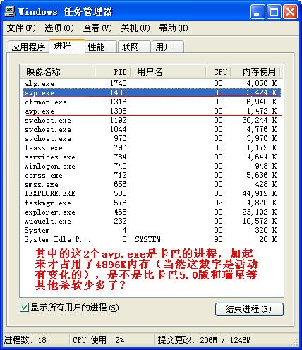 关于卡巴6.0(我装的KIS)占用内存情况,让图片来说话: