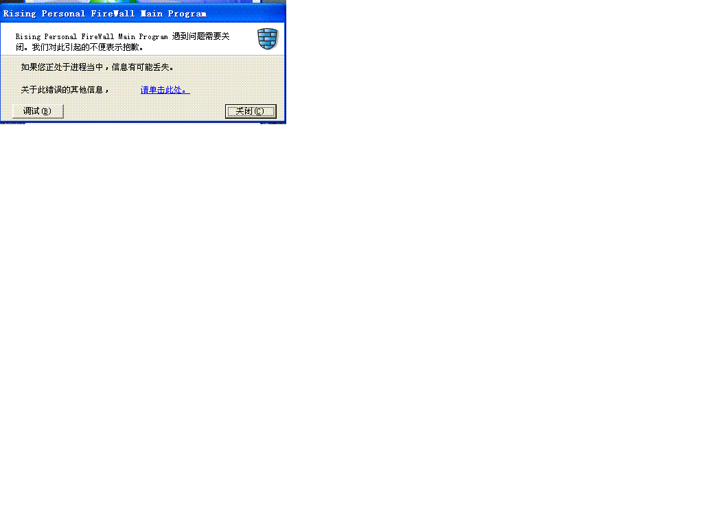 我的症状是:开启机器..然后一切正常``使用大概十到二十分钟左右(有时候可能会长点吧)就开始弹出这么个对话框了```一个"确定"按钮一个"取消"按钮`都不能按..无论按哪个都会出现网络连接不上的问题``然后任务拦上的ADSL的连接图标还在``也不能去断开``点ADSL拨号程序也不行``双击后跳出连接状态的窗口也就半秒就跳掉了```比较郁闷!只能重起..然后这个问题就这样重复...