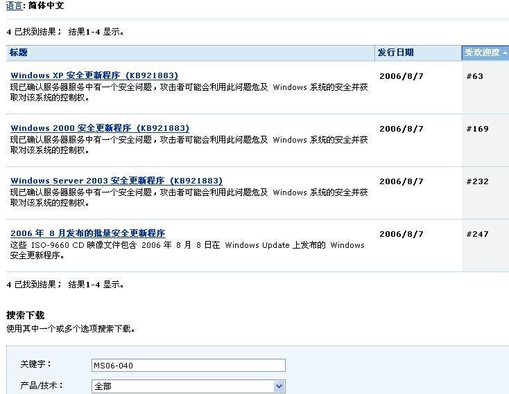 就大 MS06-040 就能防止了 XP1 更死惨...