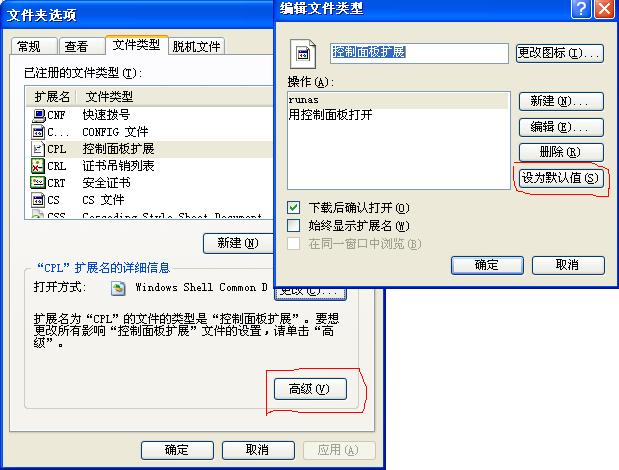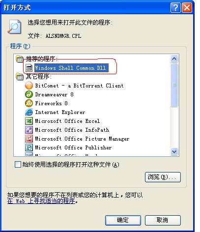 我的电脑现在*.cpl直接双击已经不能打开,说让我选程序...我选RUNDLL32.EXE,可是没用