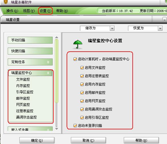 请检查一下系统服务中的瑞星服务项目都设置为自动了吗?再者在瑞星内存监控中心设置一下,参见下图红框中所示