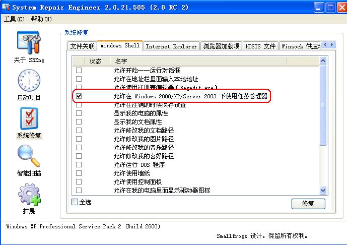 用"SREng"修复系统修理工\SREng.exe参见下图所示