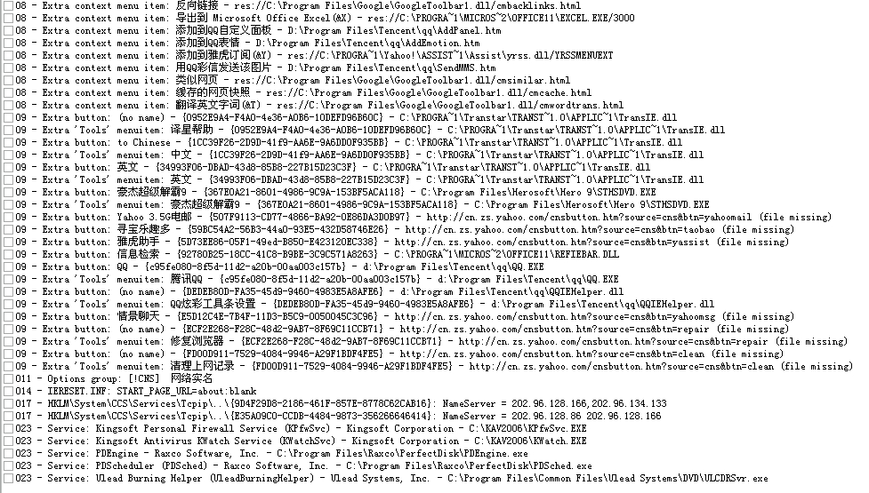 系统里有流氓软件雅虎和网络实名等,应该将它们清理出去。