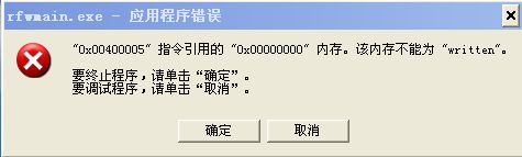 “0x00400005”指令引用的“0x00000000”内存。该内存不能为“written”.