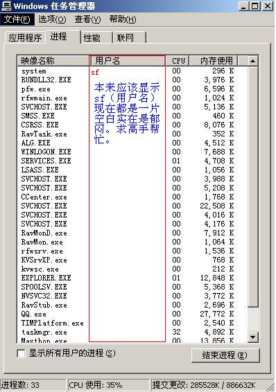 【求助】不知道什么时候任务管理栏的用户名全没了 怎么样再弄出来啊?