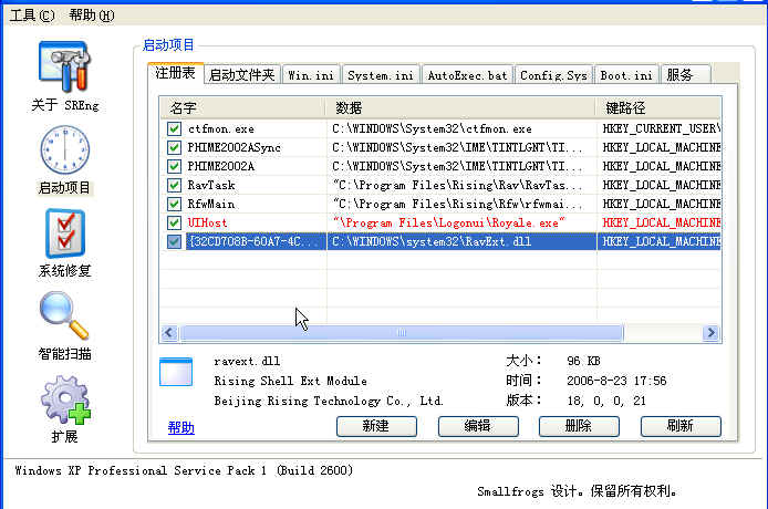 运行System Repair Engineer,使用“启动项目,注册表”来删除以下选项