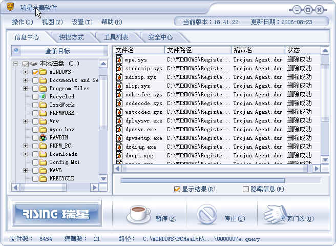 非常感谢,删掉两个文件阿,重新用瑞星杀毒就查出病毒来了