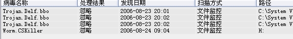 怎么瑞星监控到病毒总是忽略???