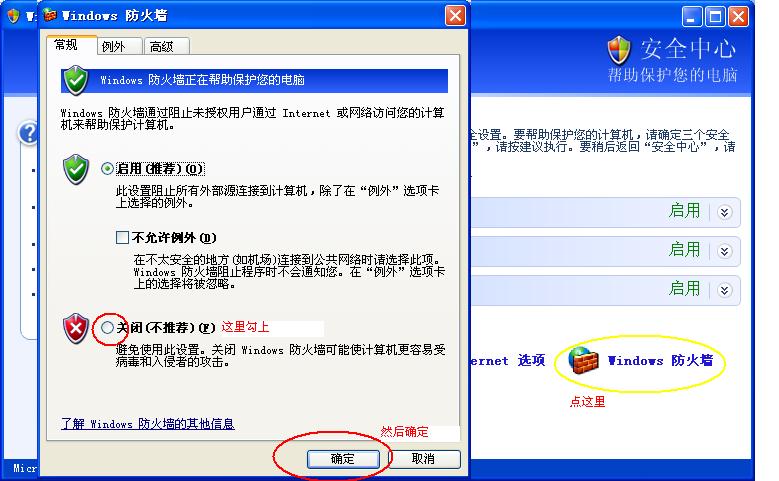 我觉得是两个防火墙冲突了,如何停用xp sp2的防火墙呢?