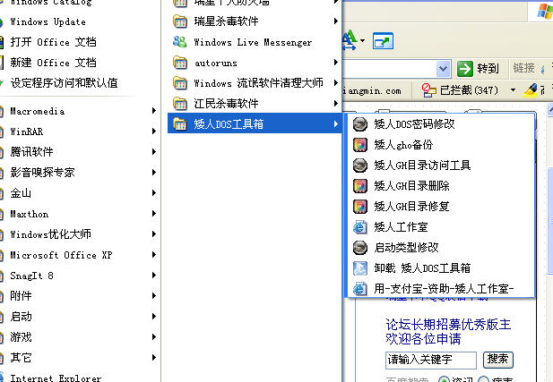 这几天想进入DOS删除一个文件,那文件搞定了,而矮人DOS工具箱出问题了,进去全英文,听介绍是有中文的,控制面板的添加和删除程序也没有,开始程序也没有,现在想干净卸载,特别是它在一些盘的文件(夹),如:argh. 是无法删除的,出现"无法读取源文件或磁盘",不知道怎么弄了,请知道的朋友给个建议,谢谢!