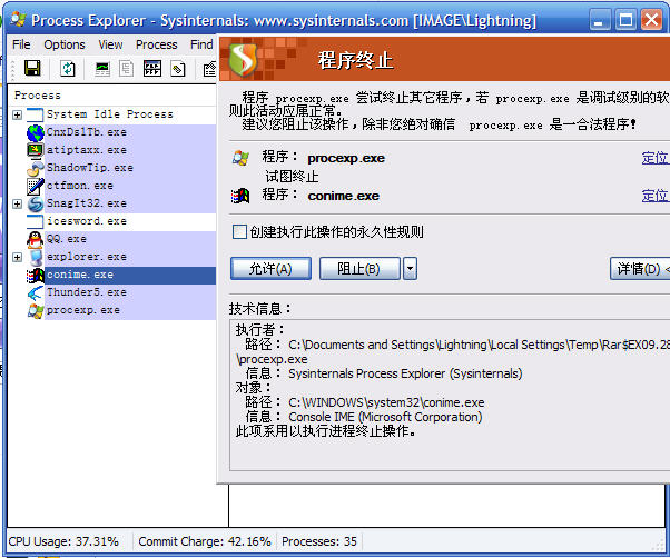 听说ProcessExplorer可以终止许多顽固的木马程序,于是下载了一个来用.