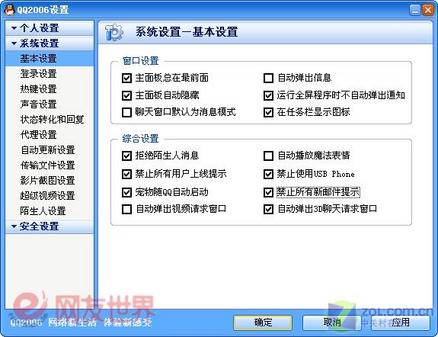在QQ中带有一个邮件功能,而QQ邮件本身也是漏洞多多,黑客可以直接用QQ邮件携带木马攻击,打开QQ邮件就中招!同时QQ邮箱地址就是该用户的QQ号码,非常容易遭受定点攻击或大量群发攻击,因此出于安全考虑,不要使用QQ邮件功能。同时可在刚才的设置对话框中选择“系统设置”→“基本设置”,勾选“禁止所有新邮件的提示”(如图2)。
