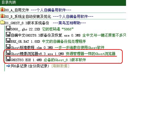 你可以到我的“网络优盘”里下载一个“GHOST8.3版本”文件来参见下图红框中所示