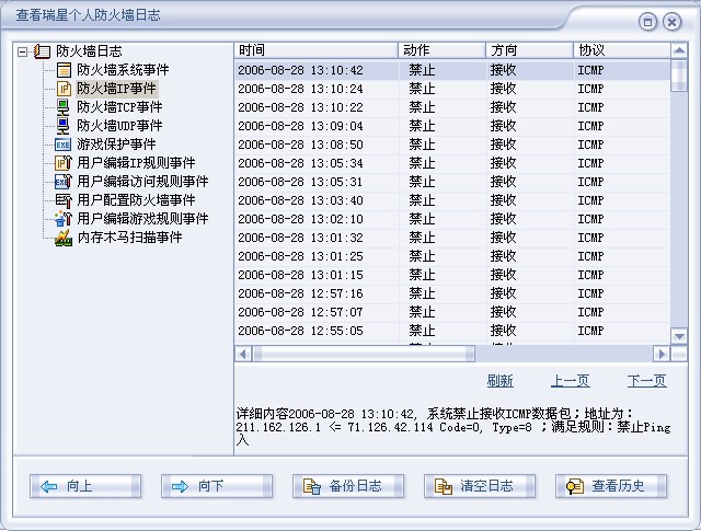 补充一下,打开瑞星防火墙,看日志,如图: