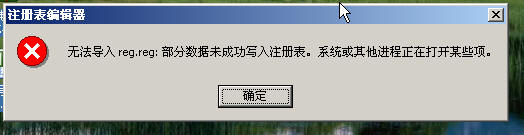 无法导入reg.reg,部分数据未成功写入注册表。附图