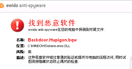 求助~好象是最新的灰鸽子,backdoor.hupigon.bwq根本杀不掉