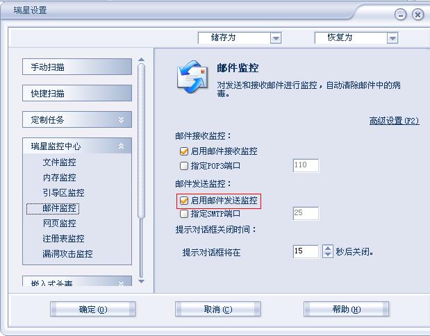 邮件能发了,但瑞星的小伞变黄了