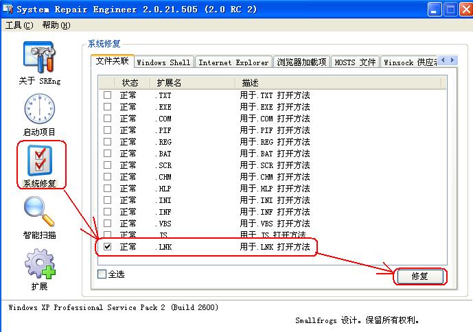 用"SREng"修复系统修理工\SRE参见下图红框中所示: