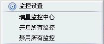 第一次右击红伞,出来的对话框,只有“监控设置”和它下面的三项,而且只有“开启监控中心”是黑色可用的,其他都是灰色不能用。