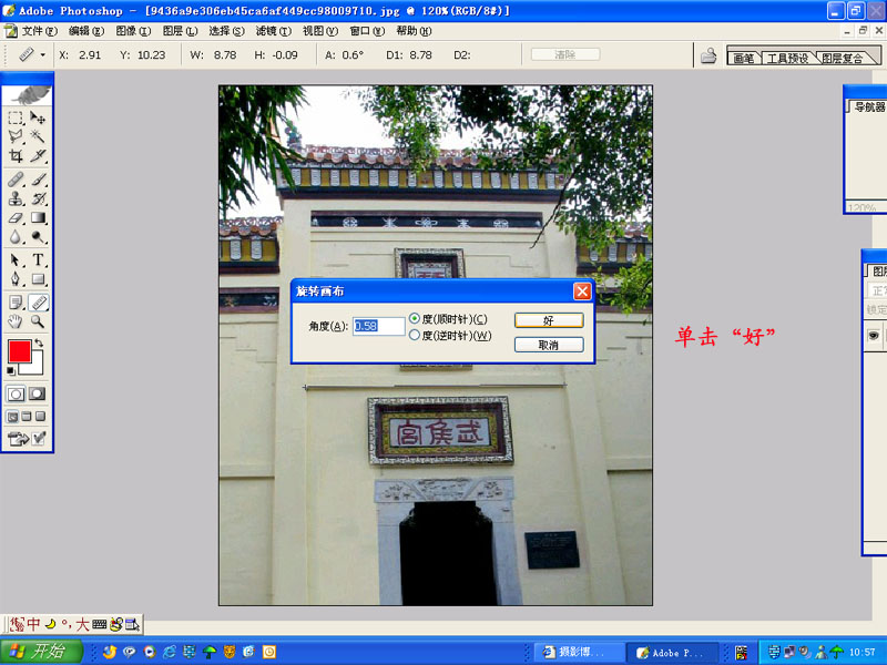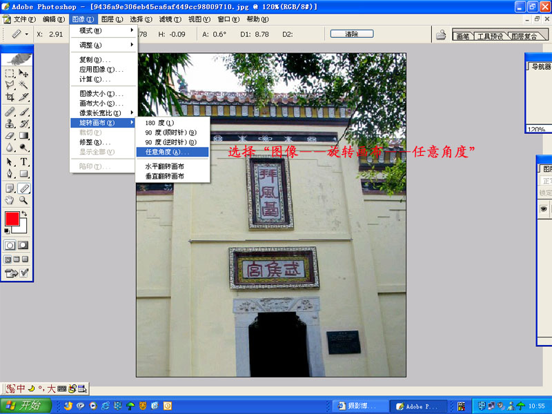 【原创】介绍使用photoshop调整倾斜图象水平的方法。