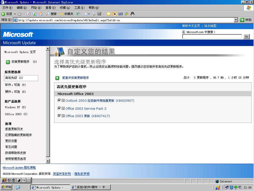 【求助】刚刚用WINDOWS UPDATE检查系统升级,发现有三个未更新的设置。