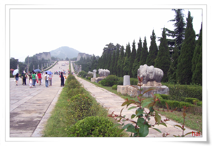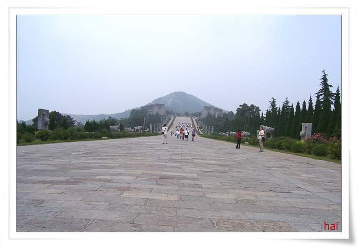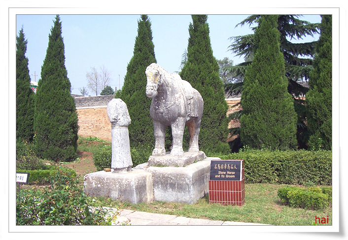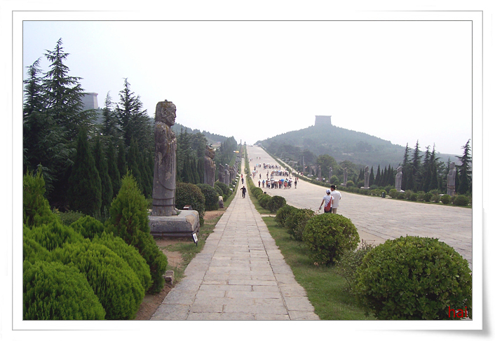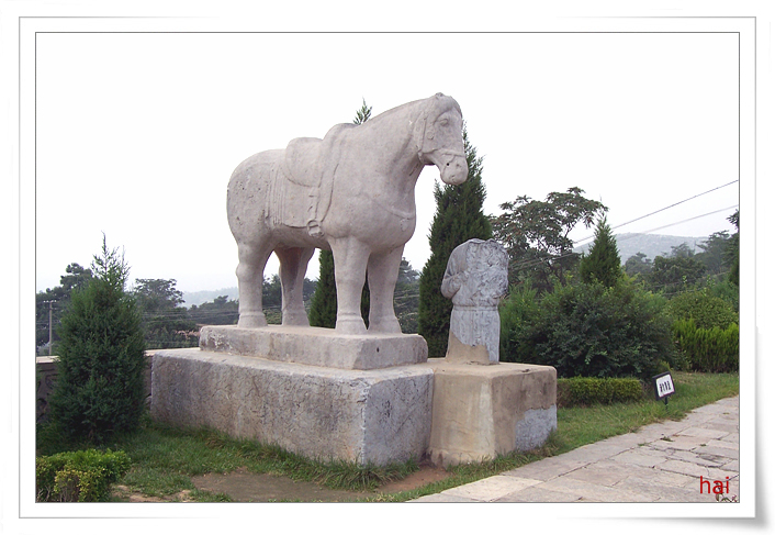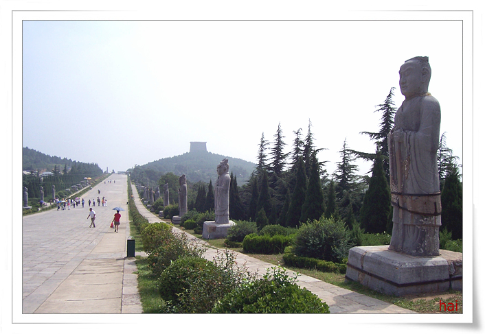 乾陵是唐高宗李治和女皇武则天的合葬墓,位于西安乾县城北6公里的梁山上.乾陵陵冢即为整个山头,东西两阙为乳峰山.从远眺望,整个乾陵是仰卧的女皇.陵前排列石人、石兽、华表、无字碑以及参加葬礼的外国使臣和民族首领王宾石像。