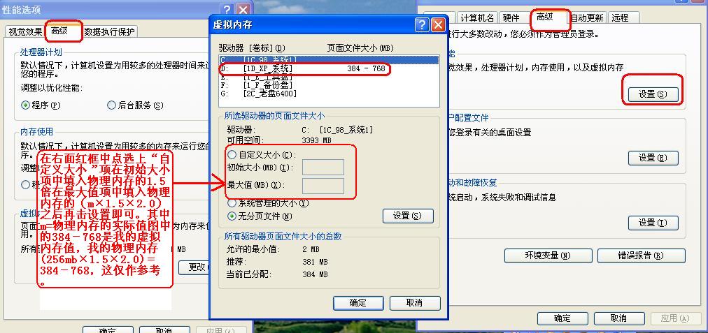 当然可以在任意那个盘都可以设置的,但是最好还选择盘符的剩余空间要大于你所设置的虚拟内存的值比如盘符空间最少要大于超过虚拟内存值的200MB以上。