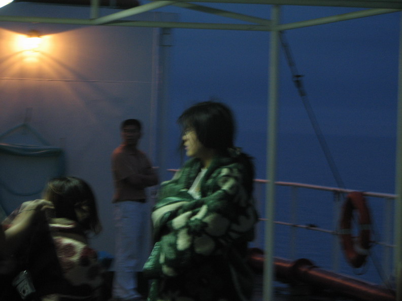7月中旬的那几天,竟一点也没盛夏的气息。凌晨4点的海面,风大而冷,渴望海上日出的人们早早的起来了。偶是4:15起的,却发现:莫道我起早,更有早起人啊!美女们个个似西藏的喇嘛,偶穿的是短袖T恤,冻的啊就像寒风里的寒号鸟~~~~~~~