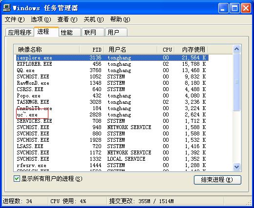 现在登陆UC,在任务管理器中有UC~.EXE的