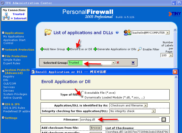 将scr_ch_pg.dll录入Trusted组。