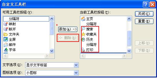 在IE上面的空白处,主页旁边的空白处,右键--自定义--找到那些不需要的,点蓝后点击删除,最后关闭。就没有了。
