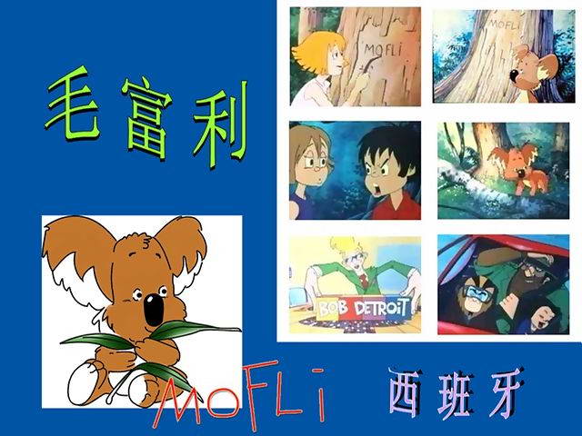 毛富利——最后的树袋鼠 【原 片 名】Mofli, el último koala 【出品年代】1986年 【出品公司】? 【国别归属】西班牙 【剧集总数】13集 【内容简介】这是一个发生在澳大利亚的故事。主旨就在于宣传保护动物,保护 大自然。但不知为什么总让观众感觉有点悲意,也许是制作者内心悲哀的无意识 流露吧,毕竟唤醒人们来保护动物是一件太难的事情。本片的主角毛富利是一只 可爱的树袋熊。他有2个人类的好朋友,一个是小女孩,一个是小男孩,他们经常 清脆的呼唤毛富利的名字来找它玩,飞满蝴蝶的瀑布是她们和毛富利的秘密避难 所。小女孩的父亲是个残疾画家,同时开着一间啤酒吧,喜欢喝啤酒。他有一个 脸长得像猩猩一样的伙计,淳朴而迷糊,经常喝得烂醉如泥。 平静的生活总是不能保持太久。21世纪初的现场报道员罗伯特·底特律将有关毛 富利的生活状况公诸于众:世界上仅存的一只考拉生活在Rivermind森林, 该地属 于澳洲的一个小镇里。马戏团的老板Trombonetti,和助理Paolo, 为了使自己的马 戏团更具吸引力,于是前往Rivermind,妄图捕获这只名叫毛富利的考拉。与此同 时,瑞贝卡父女俩和他们的专职猎手Iván也赶到Rivermind,他们想要猎取毛富利 作为战利品。